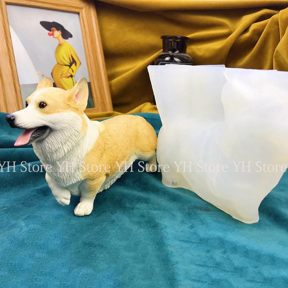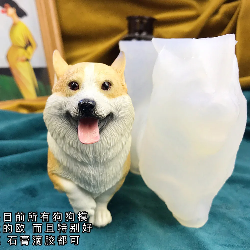 Corgi Silicone Dog Mold Plaster Pet Design Fondant Cake Mold Simulation 3D Dog Concrete Mold DIY Resin Clay Mold